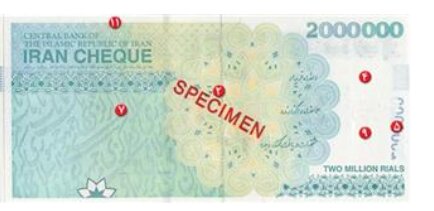 قسمتی از عدد ۲.۰۰۰.۰۰۰ در رو و قسمتی دیگر از آن در پشت اسکناس چاپ شده که در مقابل نور همدیگر را تکمیل کرده و این عدد را به صورت کامل نمایان میسازد.